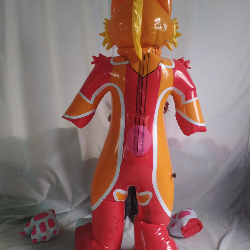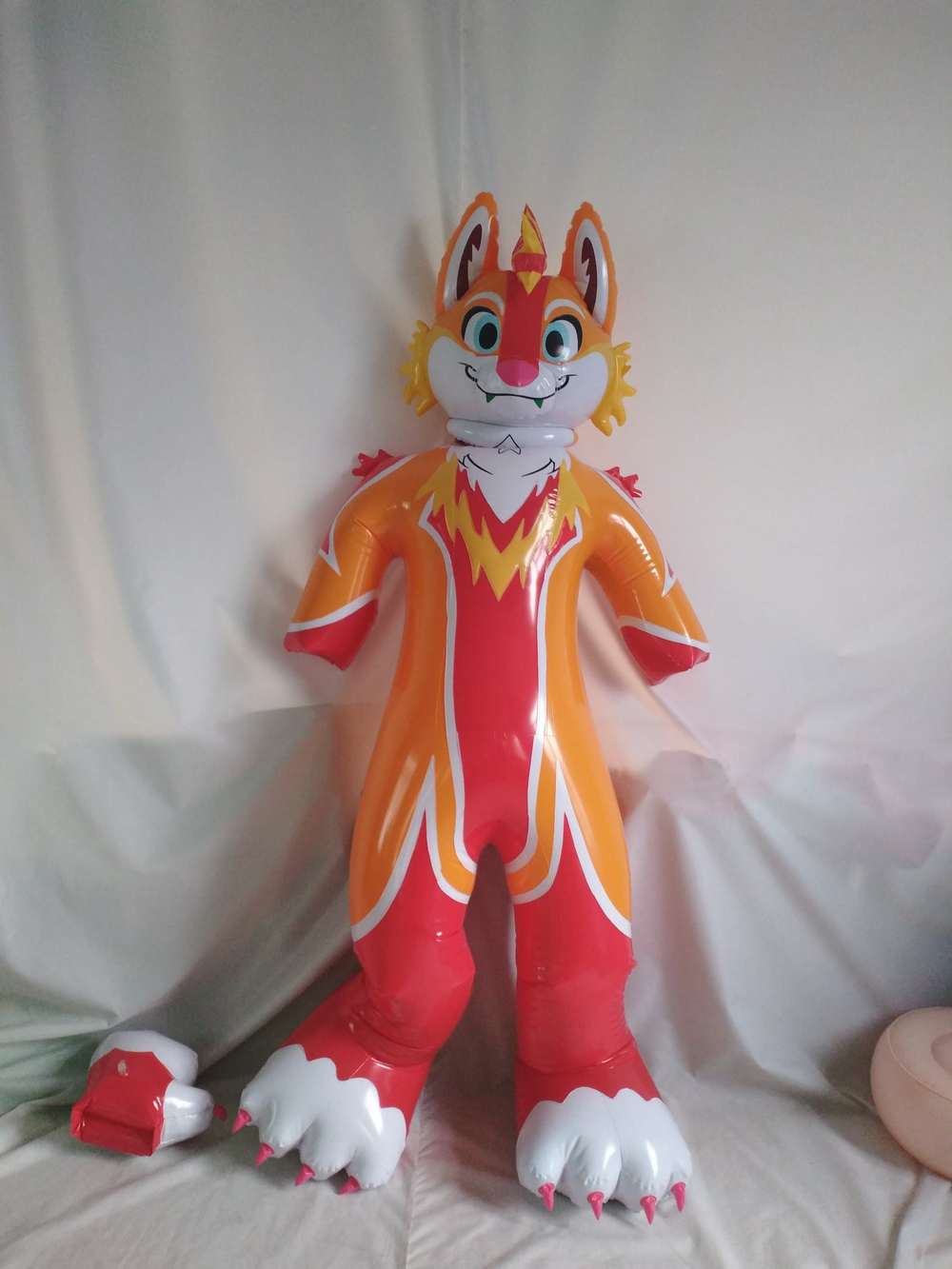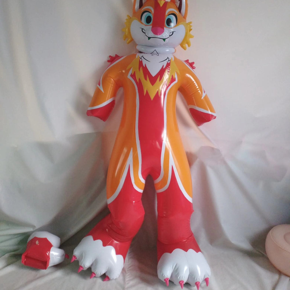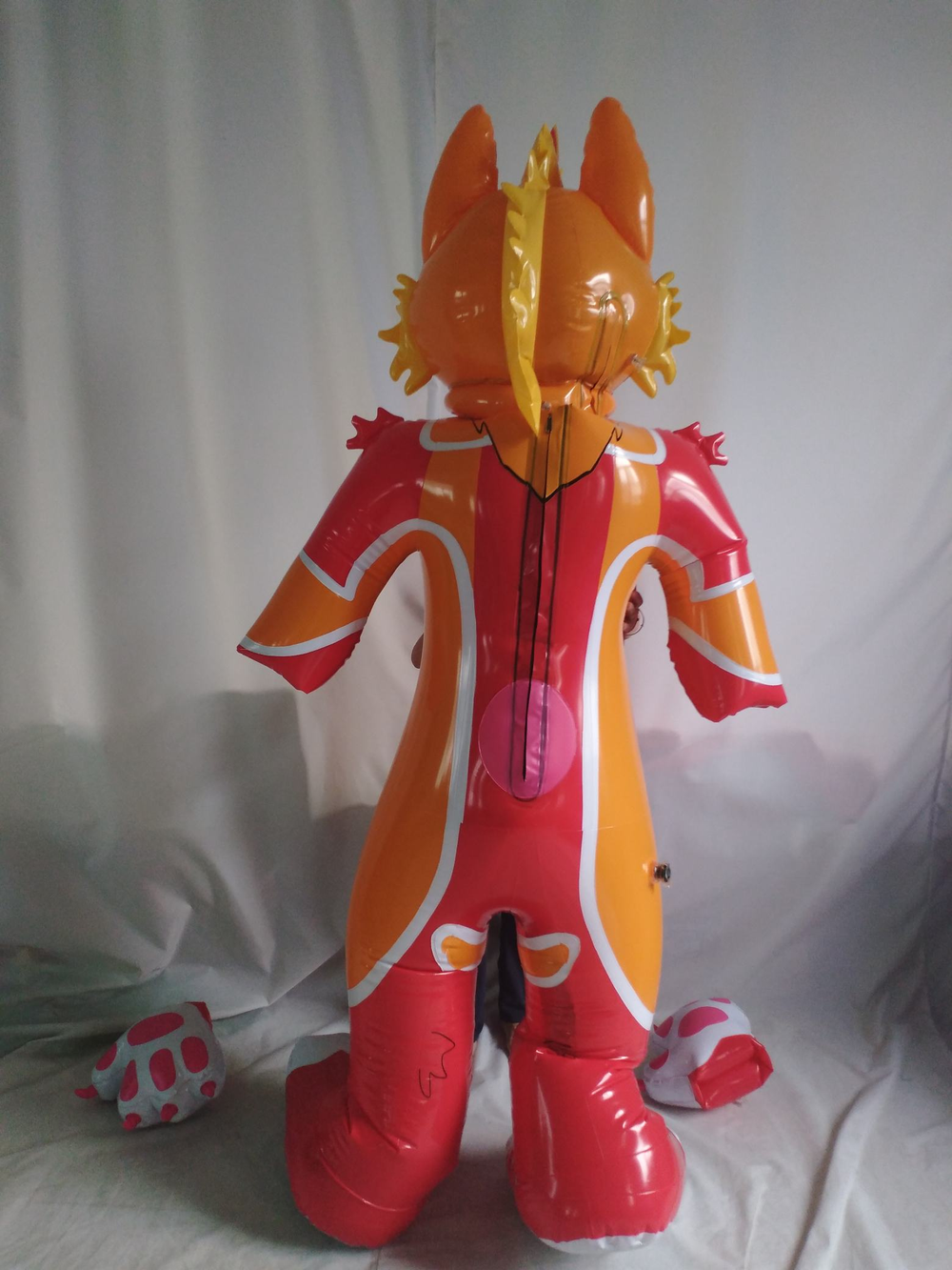 This is my first inflatable suit and I’m very satisfied! The head is very comfortable and easy to wear. It surprised me a lot how easy is to move around while wearing the head and looking around through the eyes. The build quality is nice, I like especially the use of coloured vinyl and minimum paint. It gives a nice vinyl-like smell right when unpacked. Even the paws are like a piece of art, the combination of glossy and soft matte vinyl on pawpads is very nice to touch.