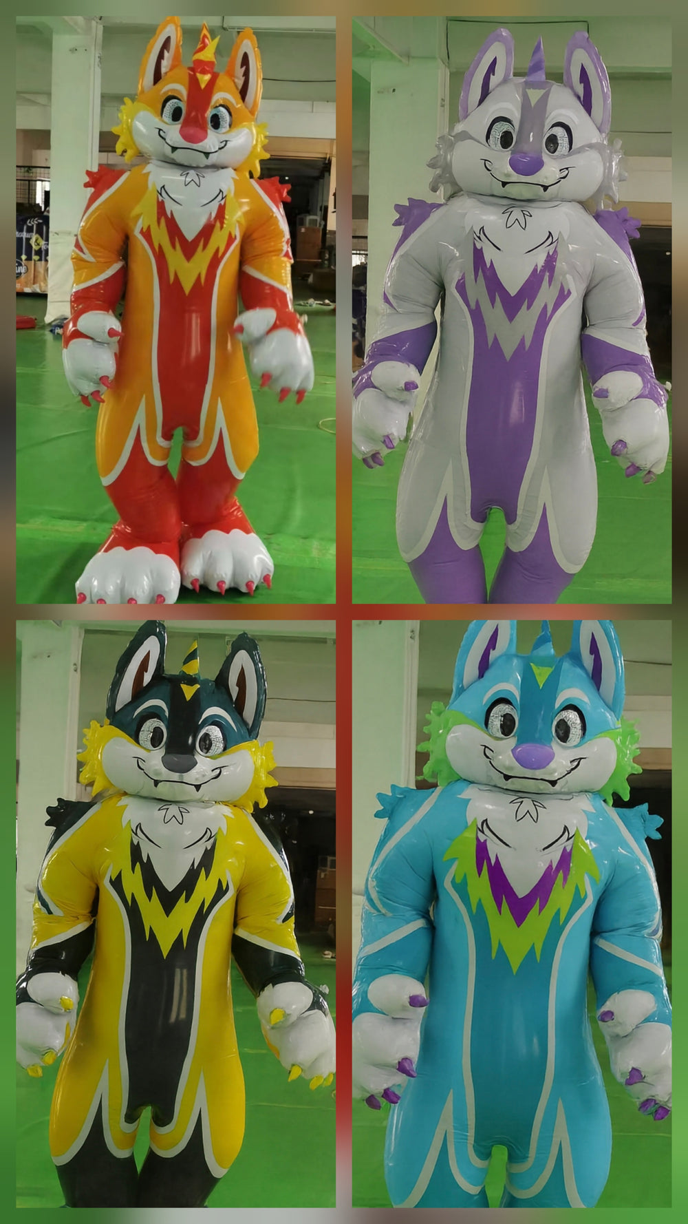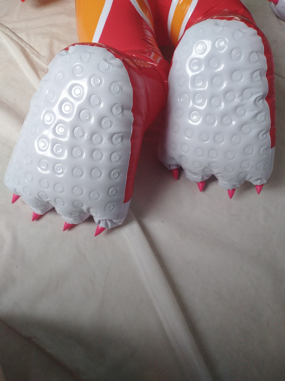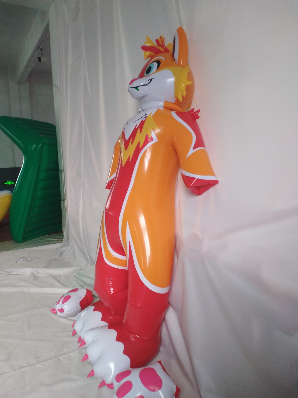 This is my first inflatable suit and I’m very satisfied! The head is very comfortable and easy to wear. It surprised me a lot how easy is to move around while wearing the head and looking around through the eyes. The build quality is nice, I like especially the use of coloured vinyl and minimum paint. It gives a nice vinyl-like smell right when unpacked. Even the paws are like a piece of art, the combination of glossy and soft matte vinyl on pawpads is very nice to touch.